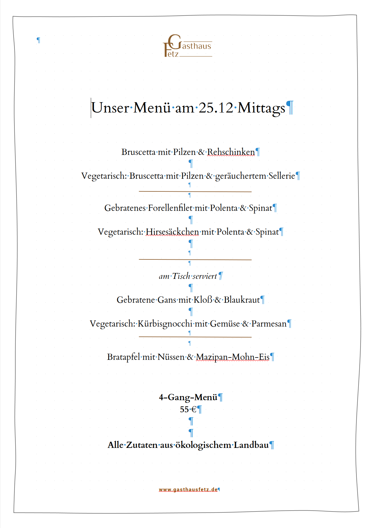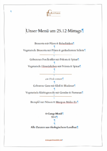 - 25.12 Mittags Weihnachtsmenü & Abends nach Karte